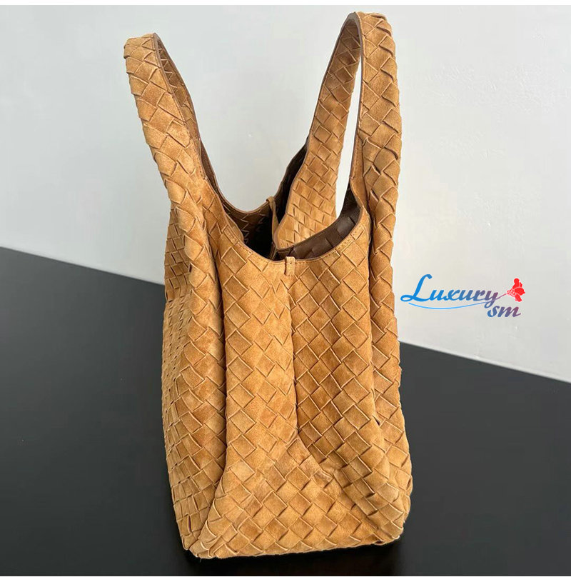 [스페셜오더]BOTTEGA VENETA-844250 보테가베네타 인트레치아토 엠버 스웨이드 가죽 라지 캄파나