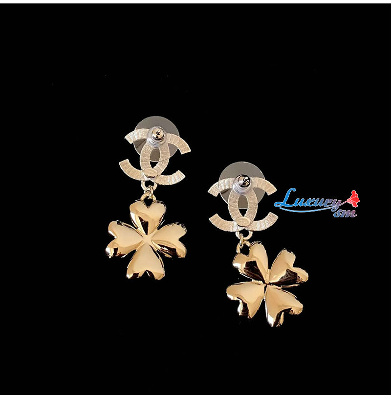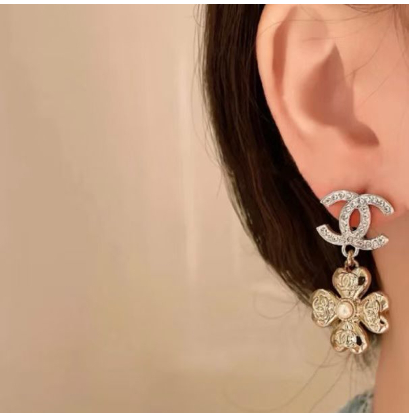 CHANEL-7619 샤넬 더블 C 풀 다이아몬드 펜던트 클로버 귀걸이