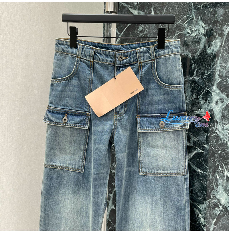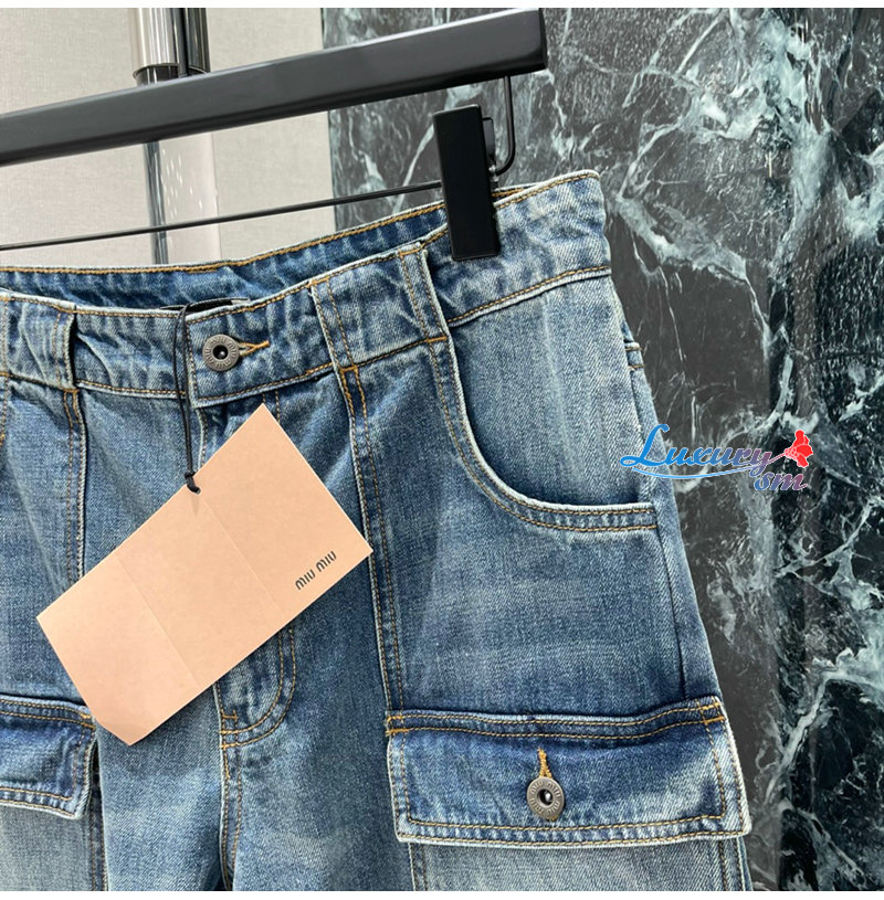 MIUMIU-032401 26년 봄/여름 신상 카고 멀티 포켓 데님 팬츠 여성용