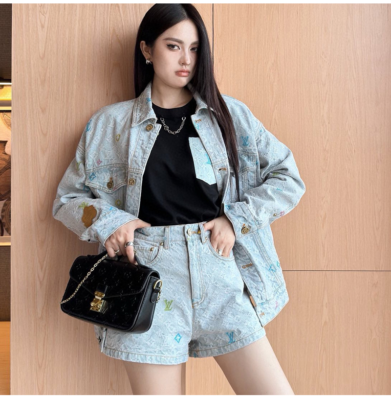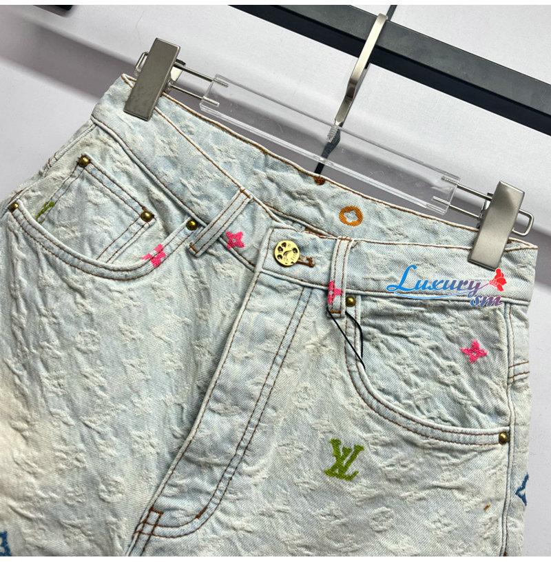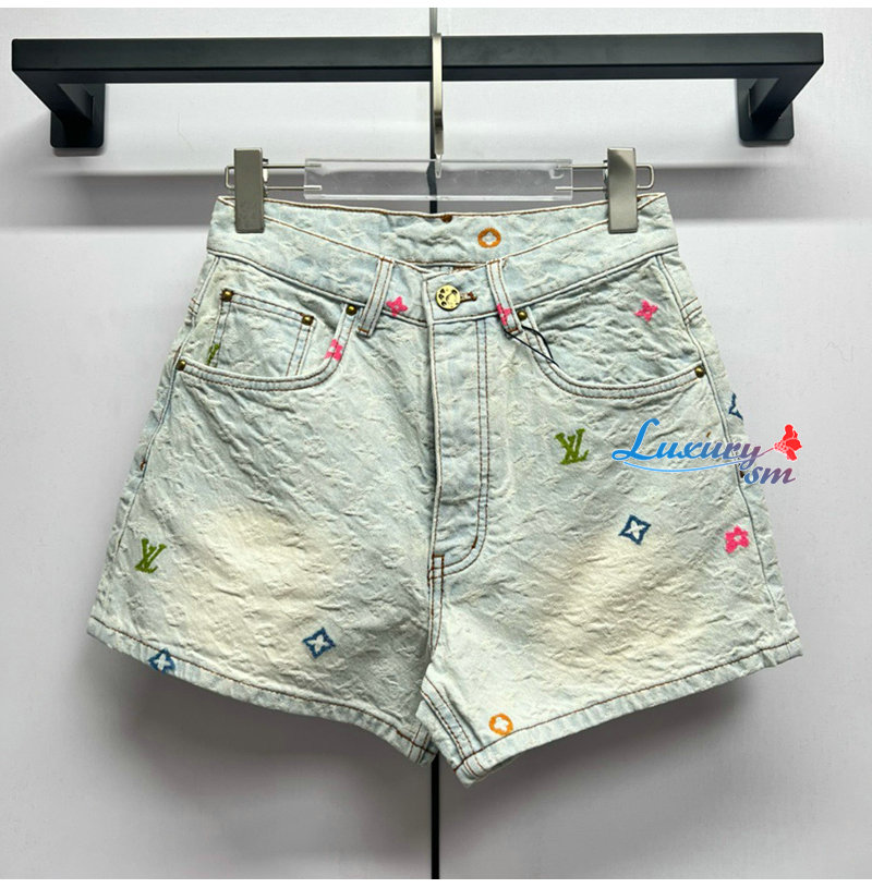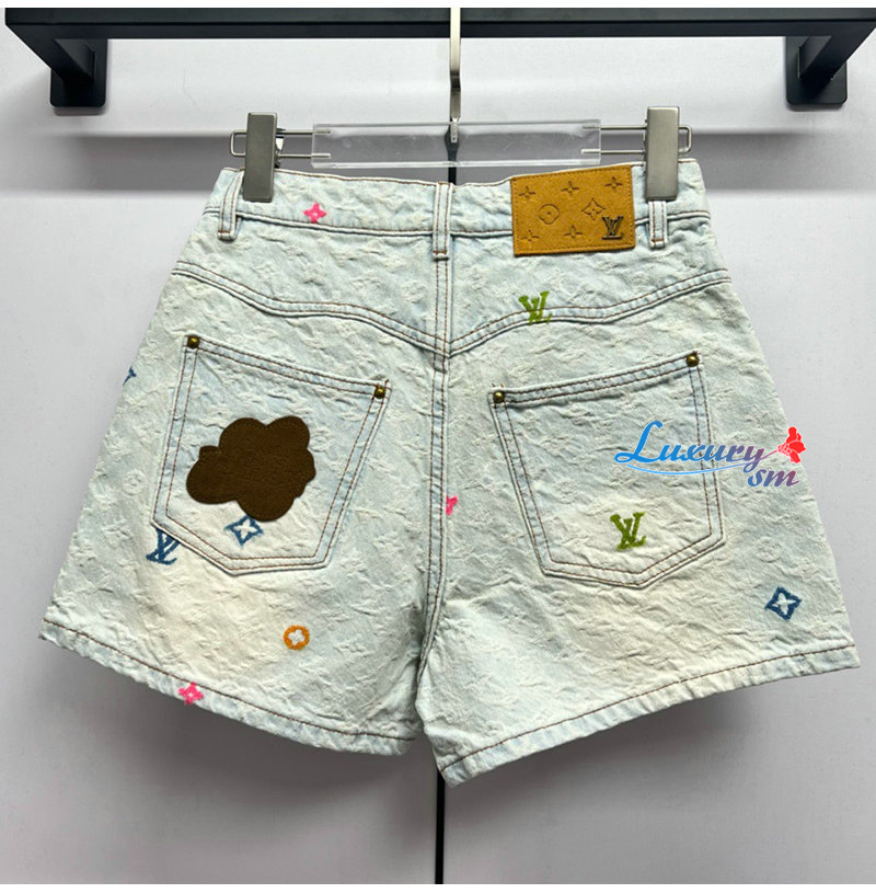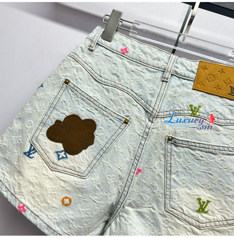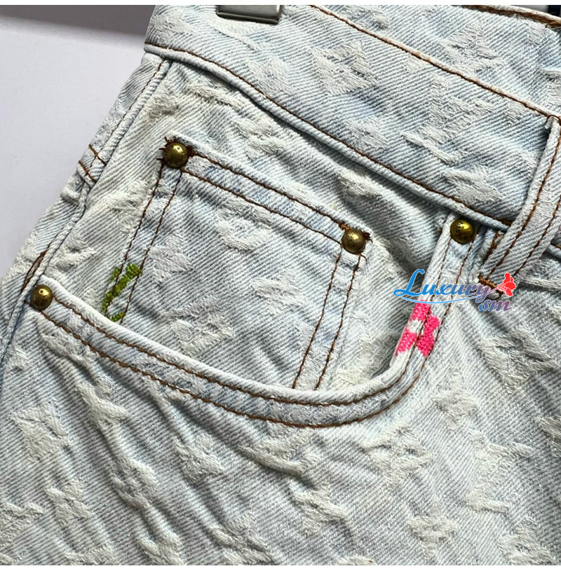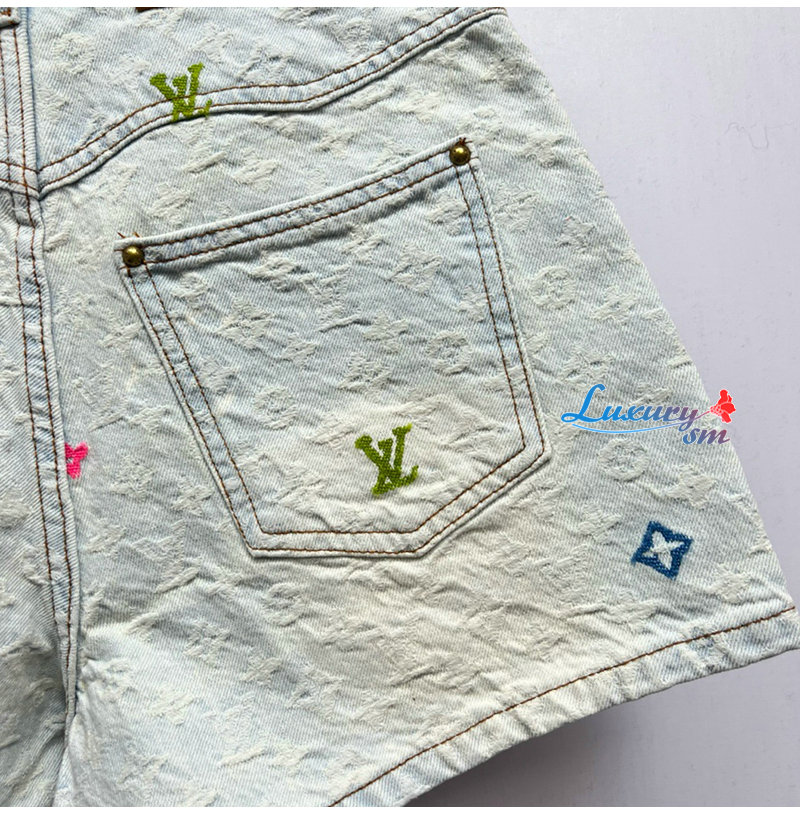 [스페셜오더]LOUIS VUITTON-M96141 Louis Vuitton × Tyler 콜라보 자카드 풀 로고 캔디 시리즈 데님 숏팬츠 여성용