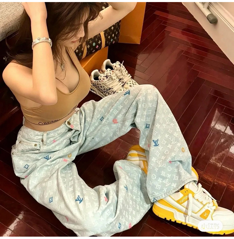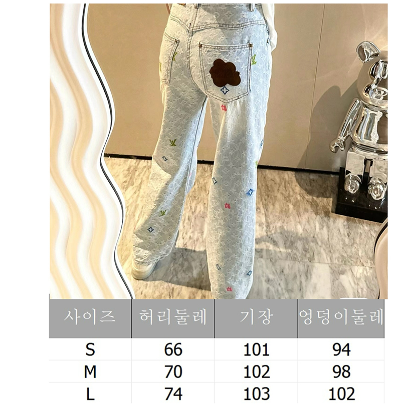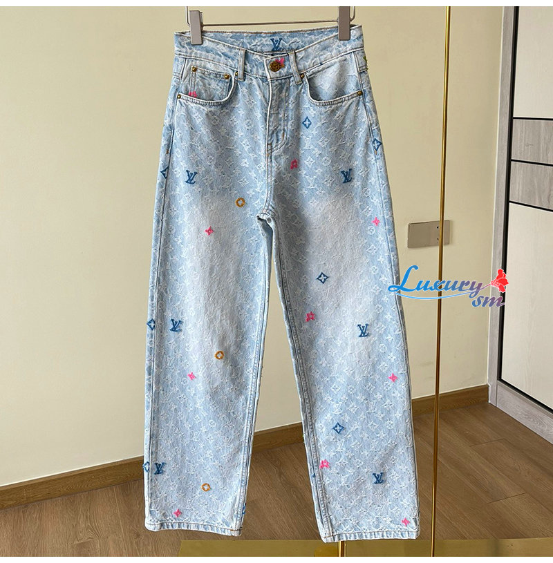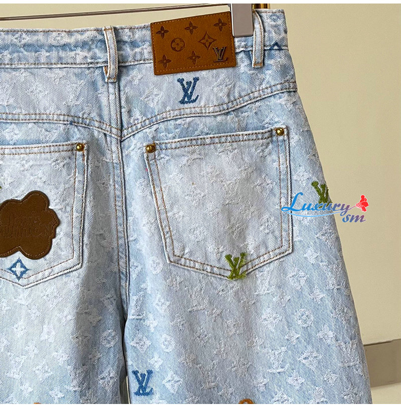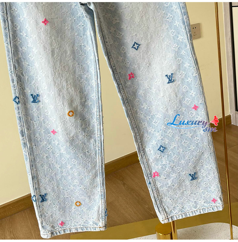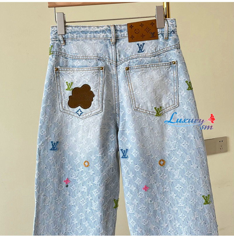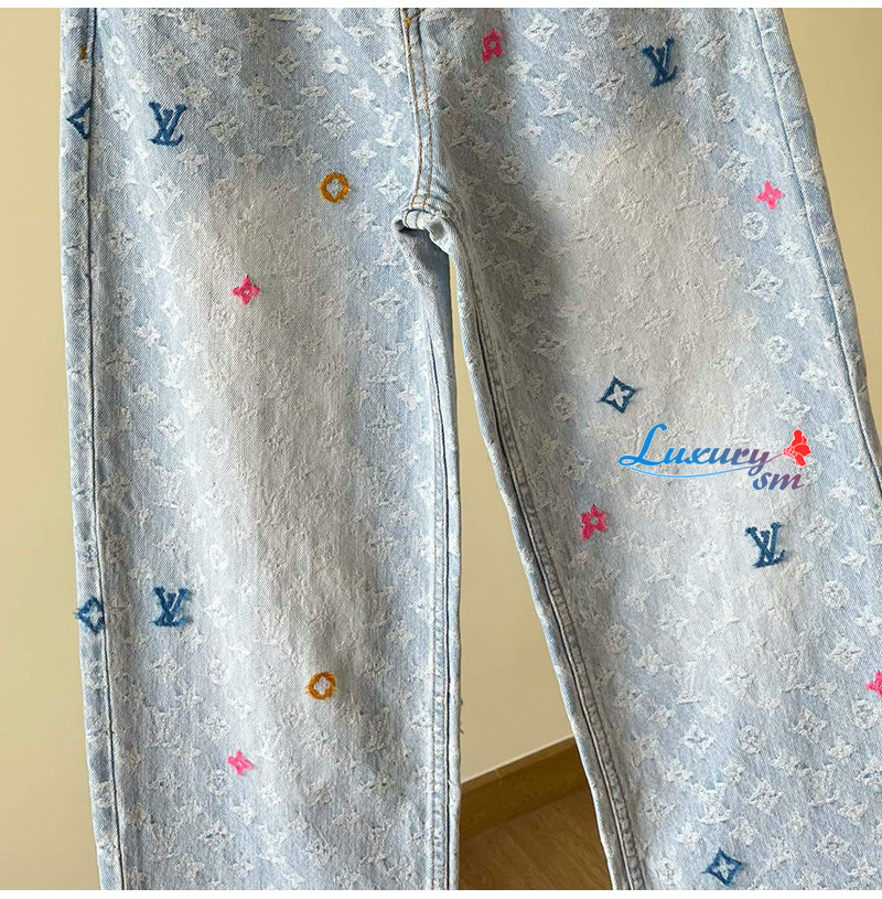 [스페셜오더]LOUIS VUITTON-M96121 Louis Vuitton × Tyler 콜라보 자카드 풀 로고 캔디 시리즈 데님 팬츠 여성용