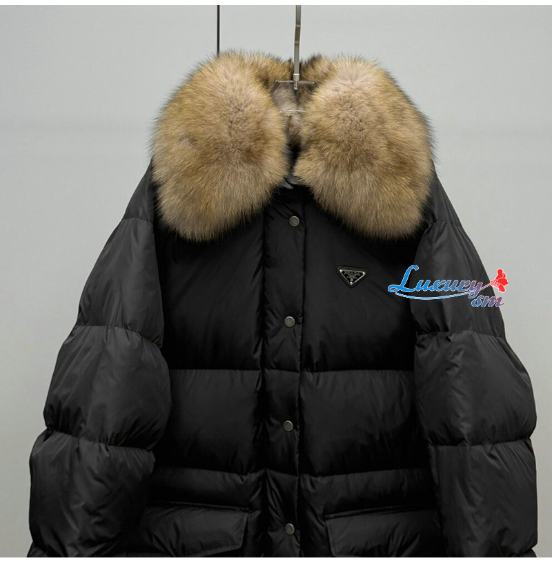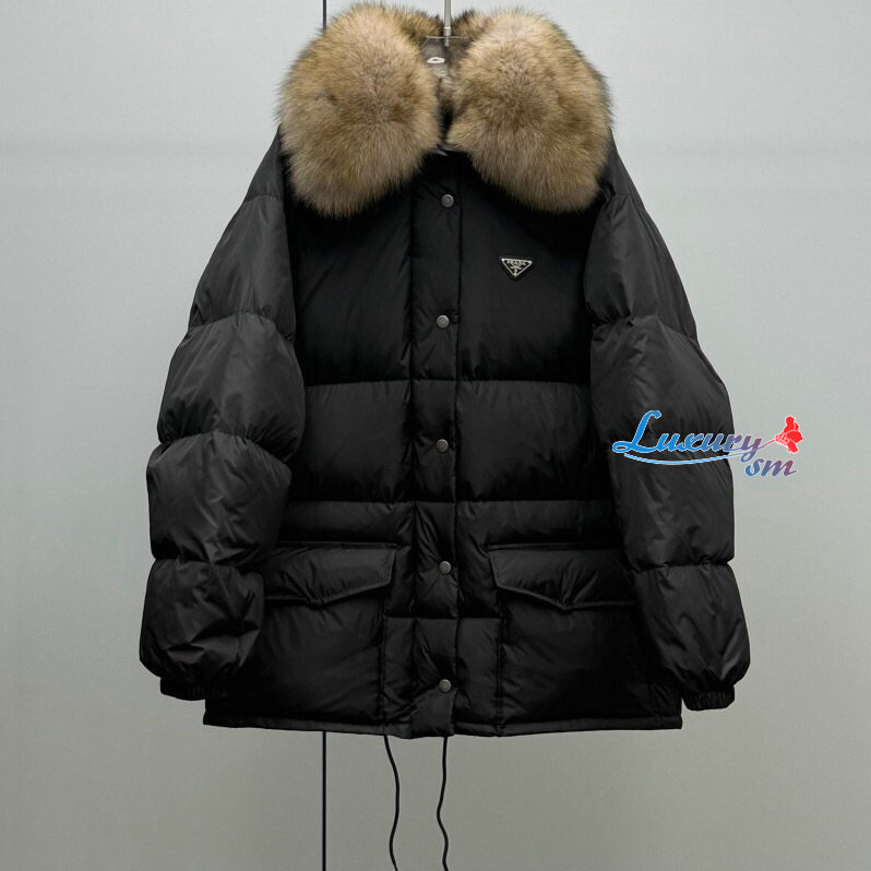 PRADA-1E3B87 프라다 신상 자카드 나일론 패딩 블랙 여성용
