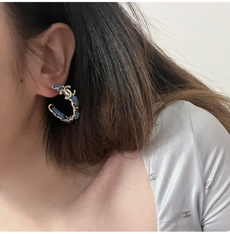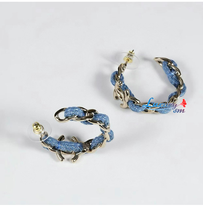 이어링 본체는 데님 소재에 메탈 체인과 더블 C 로고
