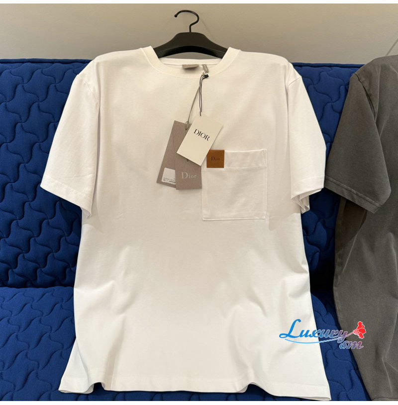 Dior-04011 디올 브라운 스웨이드 패치 반팔 화이트 남녀공용