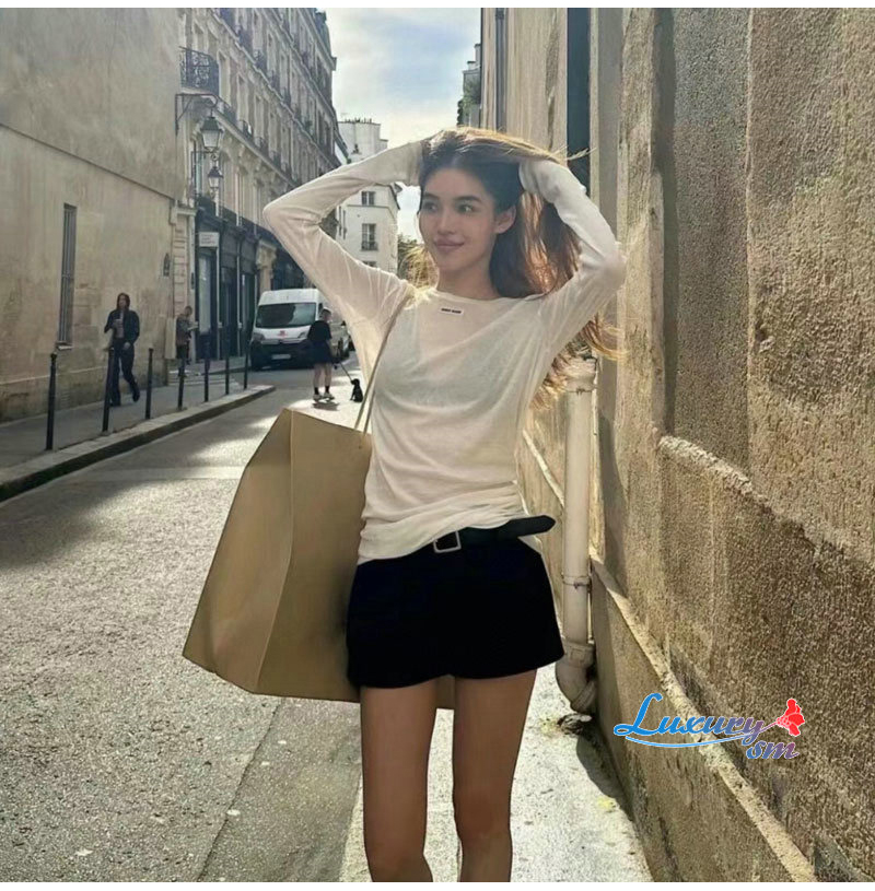 기본 모델 출하된 흰색 긴팔 기본 셔츠는