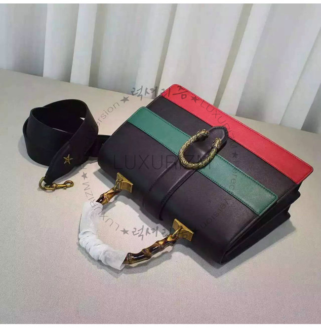 #홍콩 이미테이션 퍼팩트버젼 구찌 421999 dionysus 블랙/그린/레드 가죽 밤부 라지 탑 핸들 백