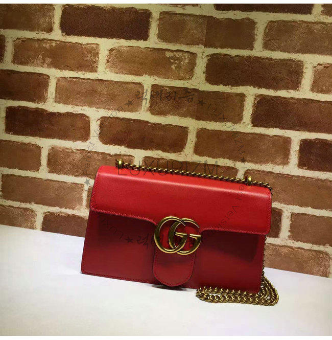 [스페셜오더]GUCCI-431777 6433 구찌 GG 마몽 미디엄 사이즈 스트럭처드 체인 숄더백 레드