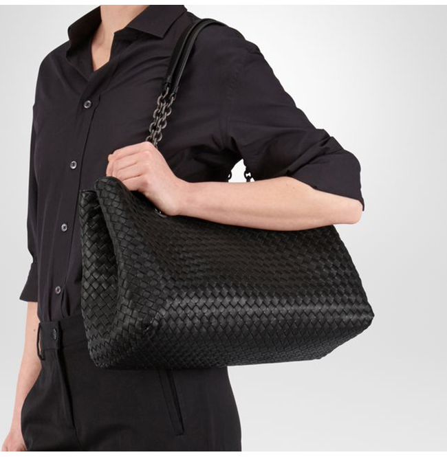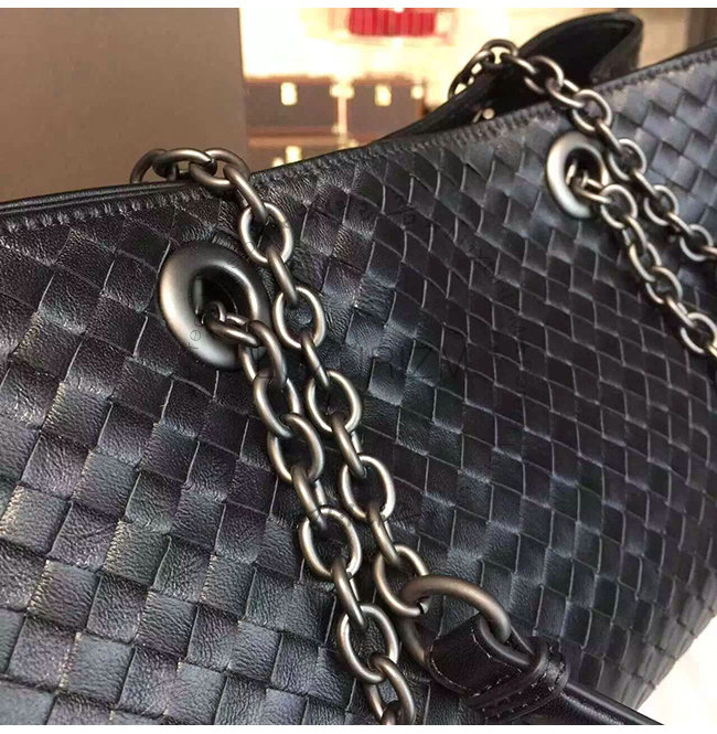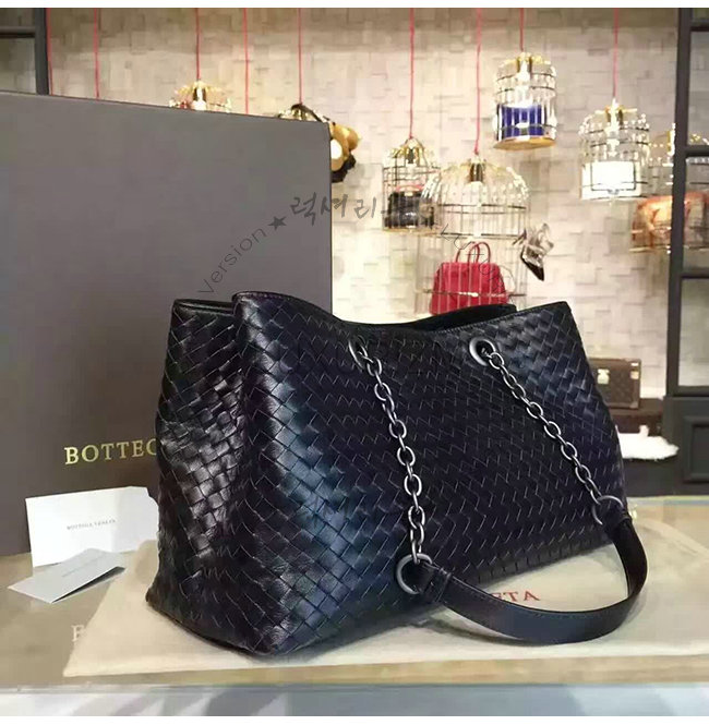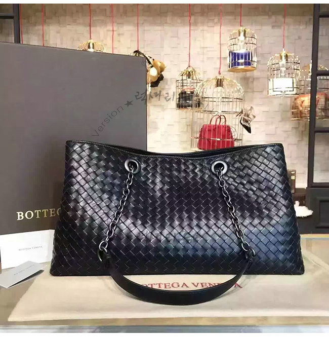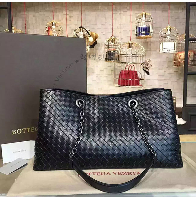 BOTTEGA VENETA-7640 보테가 베네타 네로 인트레치아토 나파 라지 토트 백