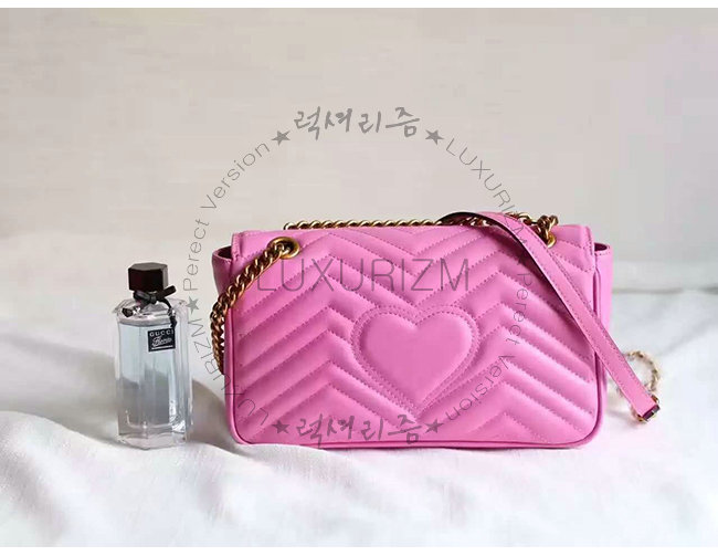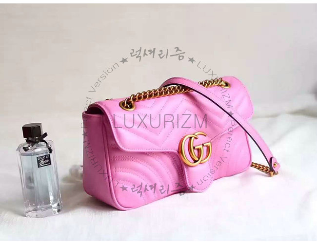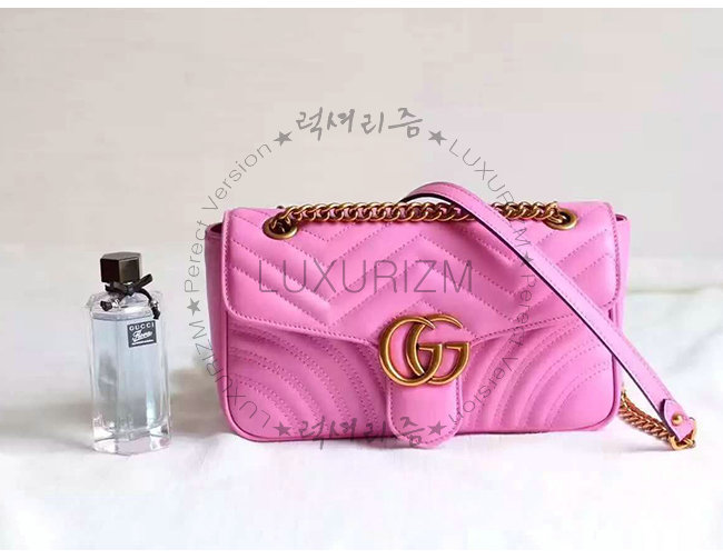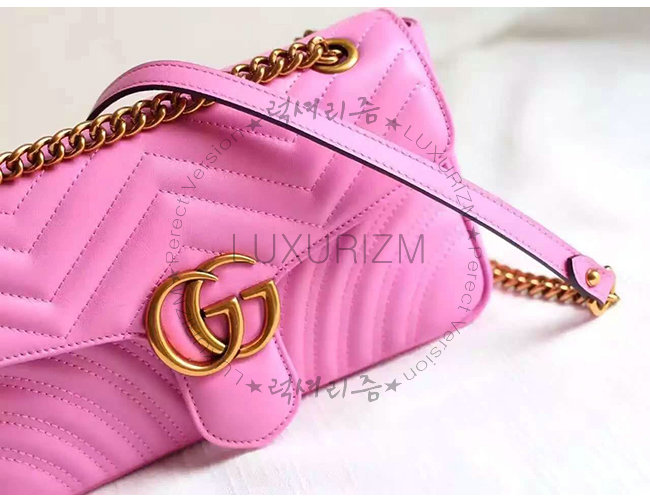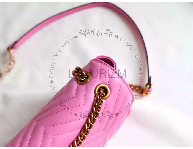 [스페셜오더]GUCCI-443497 5554 구찌 GG Marmont 마몽 마틀라세 스몰 체인 숄더 스트랩백 핫핑크