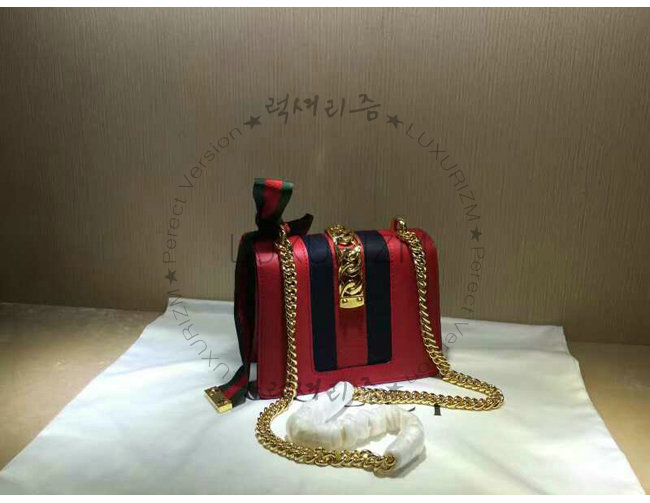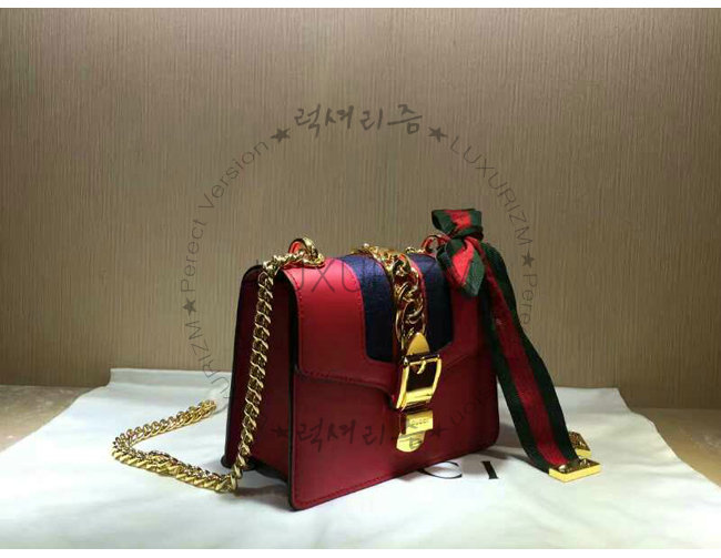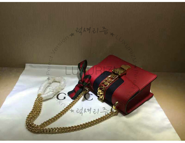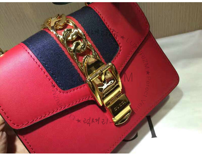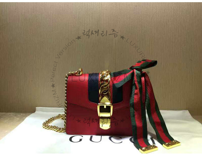 #구찌가방 럭셔리즘 1대1 완벽재현 스페셜오더GUCCI-431666 8604구찌Sylvie가죽 나일론web리본 장식미니체인백레드.