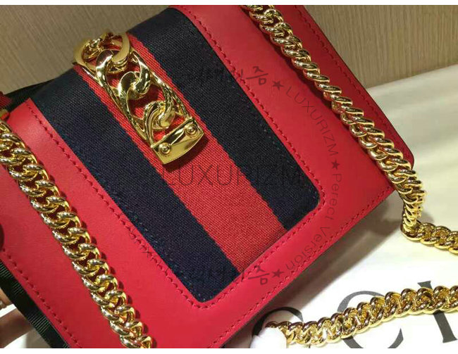 [스페셜오더]GUCCI-431666 8604 구찌 Sylvie 가죽 나일론 web 리본 장식 미니 체인백 레드