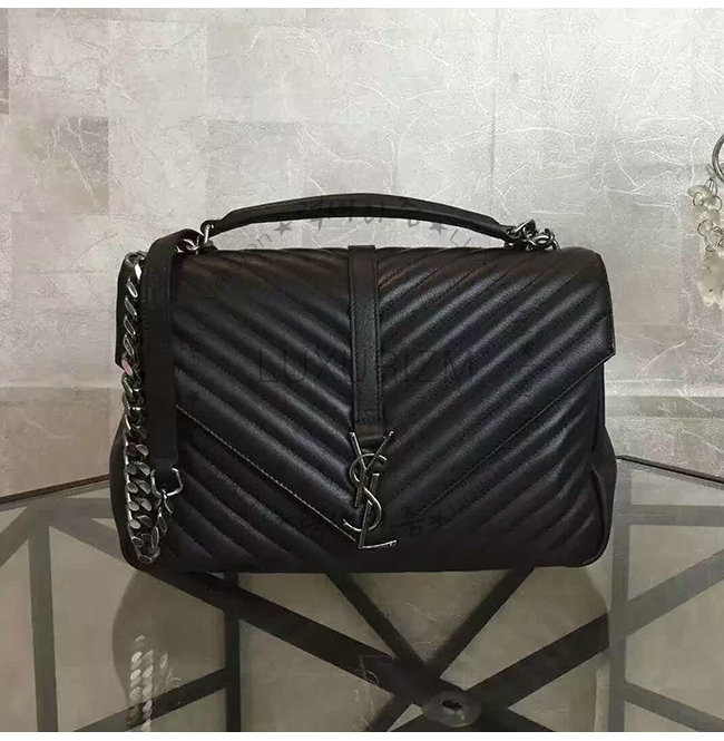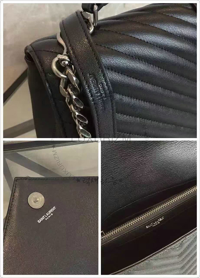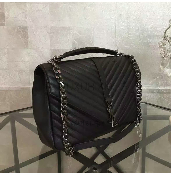 [스페셜오더]SAINT LAURENT-392738 생 로랑 블랙 마틀라세 가죽 클래식 은장 라지 모노그램 생 로랑 컬리지 백