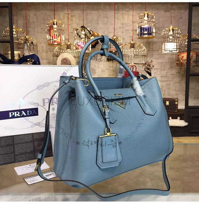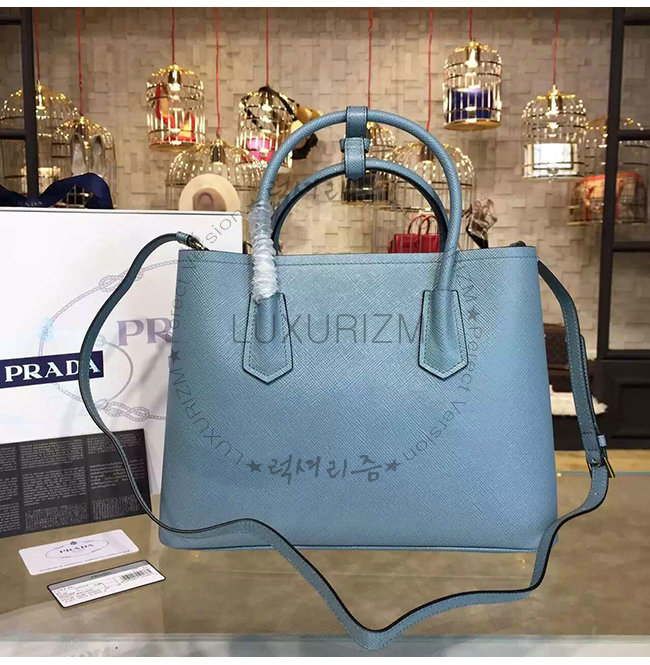 [스페셜오더]PRADA-1BG775 프라다 사피아노 더블 가죽 핸들 토트백 스카이블루