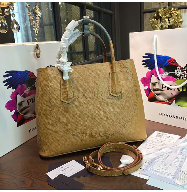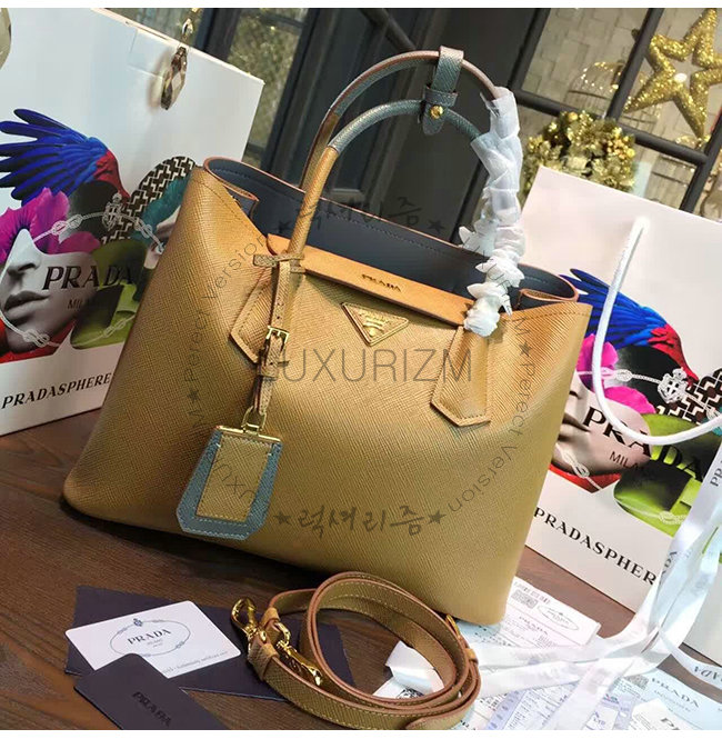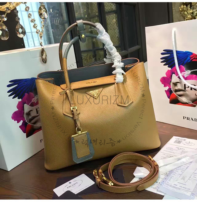 [스페셜오더]PRADA-1BG775 프라다 사피아노 더블 가죽 핸들 토트백 스카이블루
