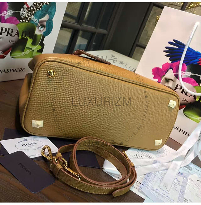 [스페셜오더]PRADA-1BG775 프라다 사피아노 더블 가죽 핸들 토트백 레드브라운
