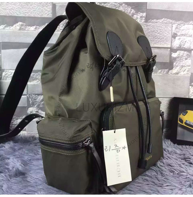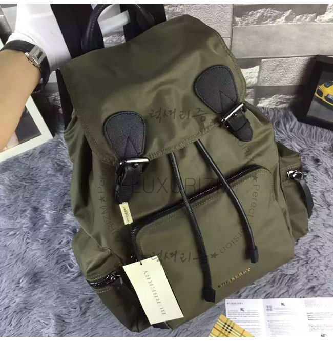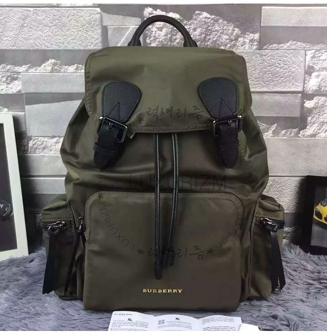 BURBERRY-380234 버버리 라지 테크니컬 나일론 가죽 럭색 캔버스 그린