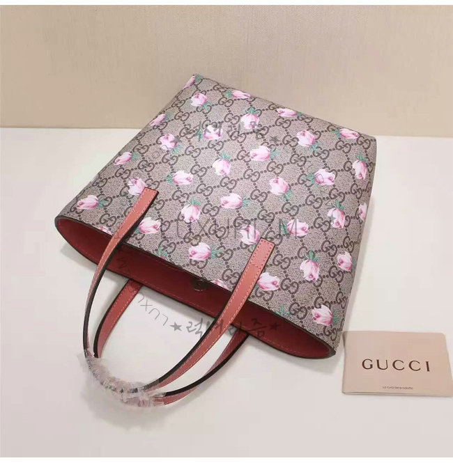 GUCCI-410812 8594 구찌 칠드런 GG수프림 캔버스 고양이 프린트 토트 백 핑크