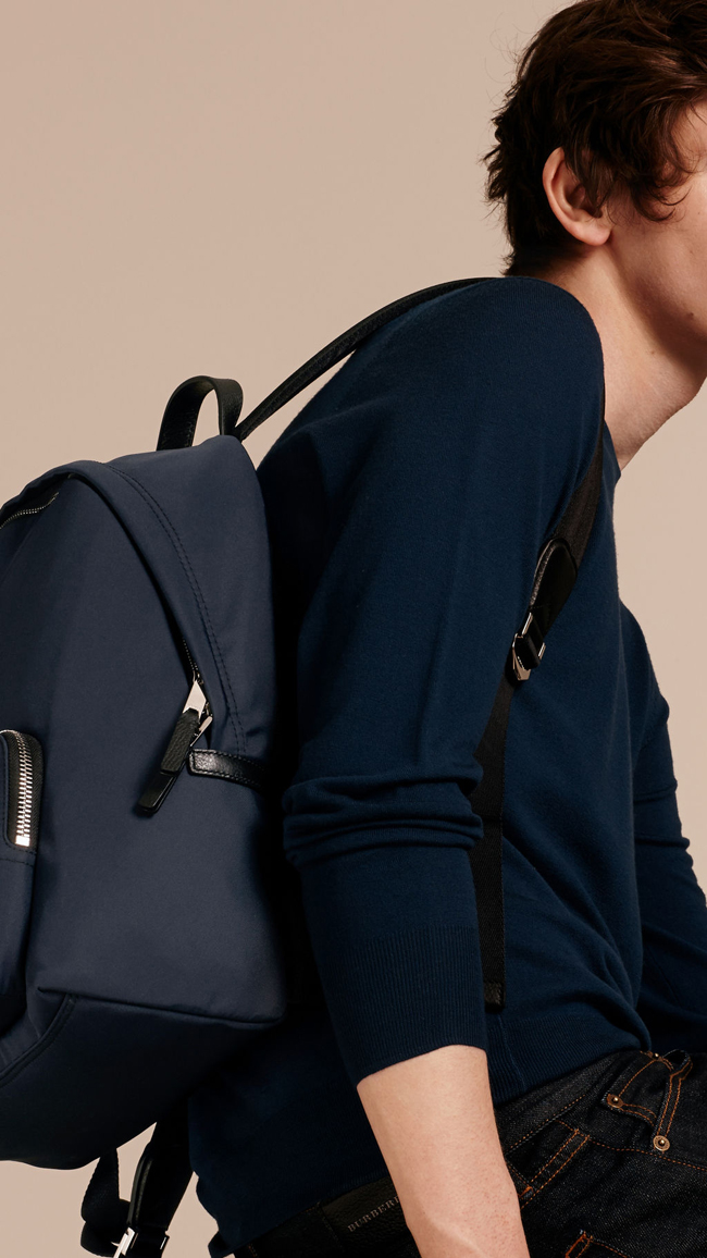 BURBERRY-40161 버버리 가죽 트리밍 나일론 백팩 다크 네이비