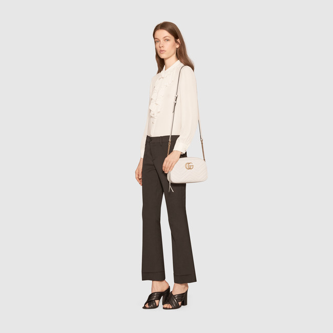 GG 마몽 스몰 사이즈 체인 숄더백. 소프트 스트럭처드 구조 탑 지퍼 잠금장치 및 더블G