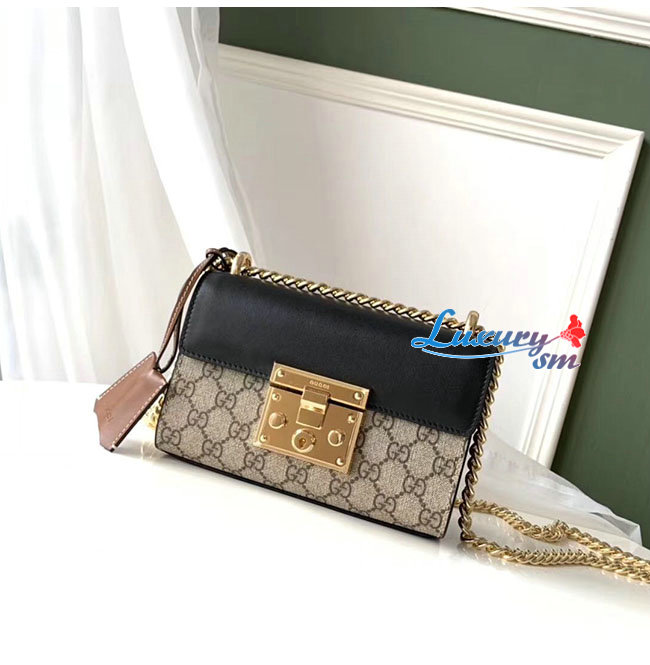 [스페셜오더]GUCCI-409487 1000 구찌 패드락 스몰 스트럭처드 시그니처 가죽 숄더백 블랙 가격 : 380,000원