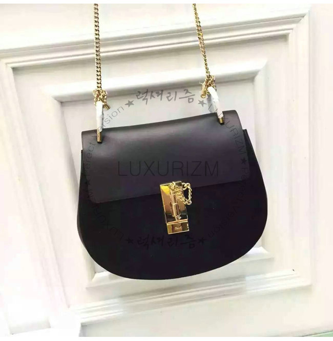 Chloe-c810 끌로에 스몰 그레인 램스킨 Drew 숄더 드류백 블랙