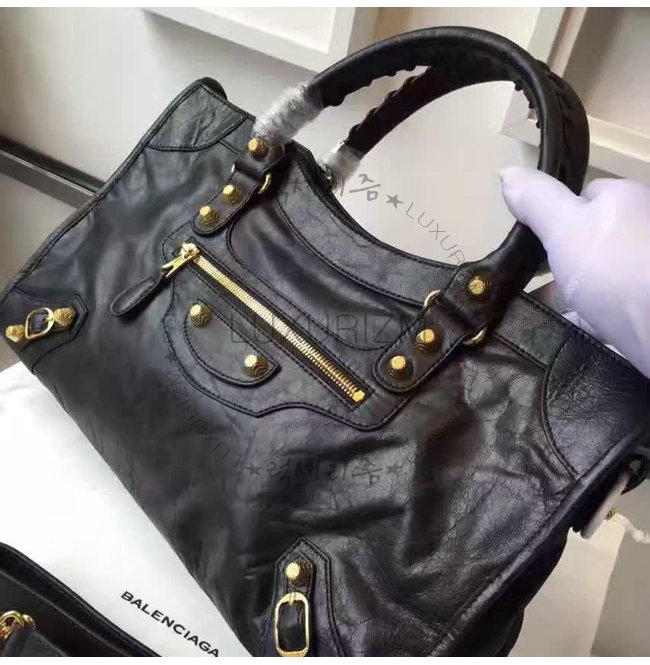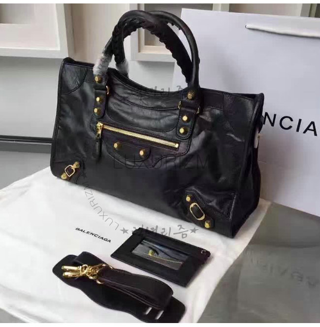 BALENCIAGA-2690 발렌시아가 자이언츠 12 골드 시티 미디엄 숄더백 블랙