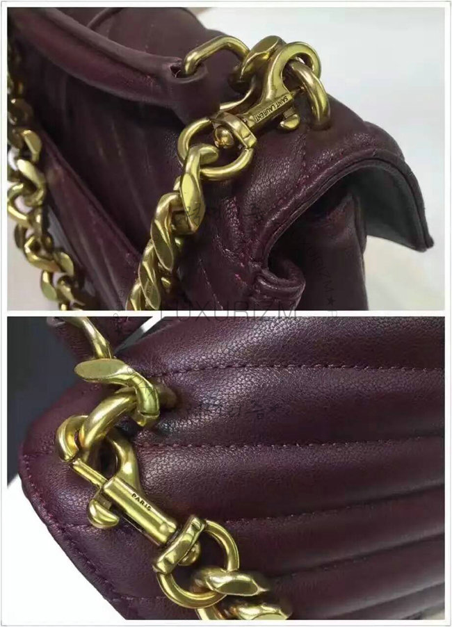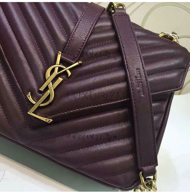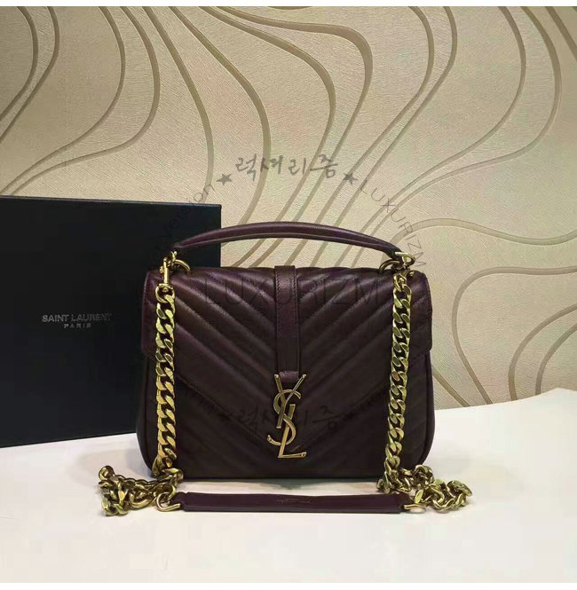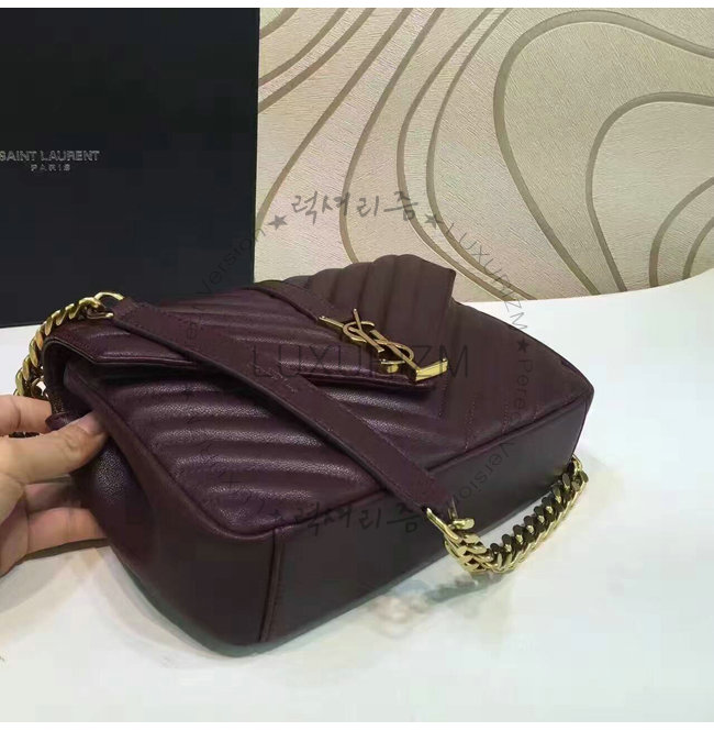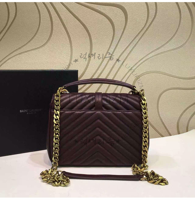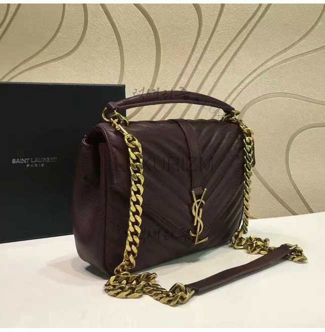 [스페셜오더]SAINT LAURENT-428056 생 로랑 다크 레드 마틀라세 가죽 클래식 금장 미디엄 모노그램 생 로랑 컬리지 백