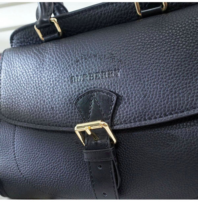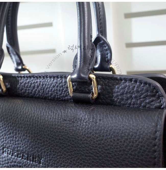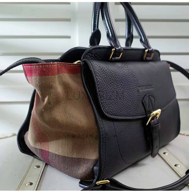 BURBERRY-40204971 버버리 미디엄 캔버스 체크 가죽 토트백 블랙
