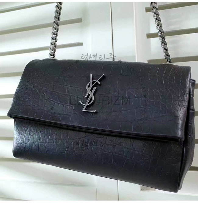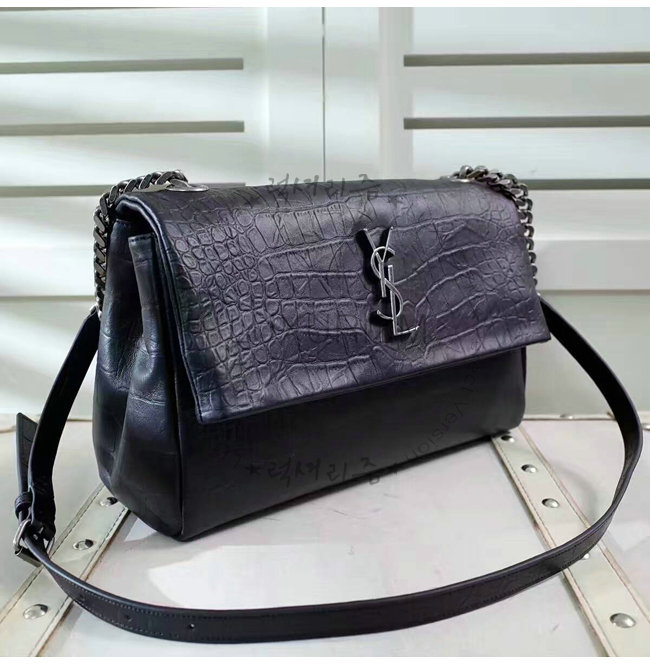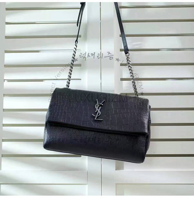 [스페셜오더]SAINT LAURENT-438176C 생로랑 블랙 크로커다일 무늬 체인 스트랩 클래식 폴드-오버 백