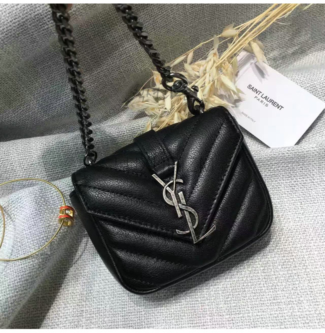 #홍콩 이미테이션 퍼팩트버젼 SAINT LAURENT 생로랑 블랙 은장 미니 마틀라쎄 레더 컬리지 백