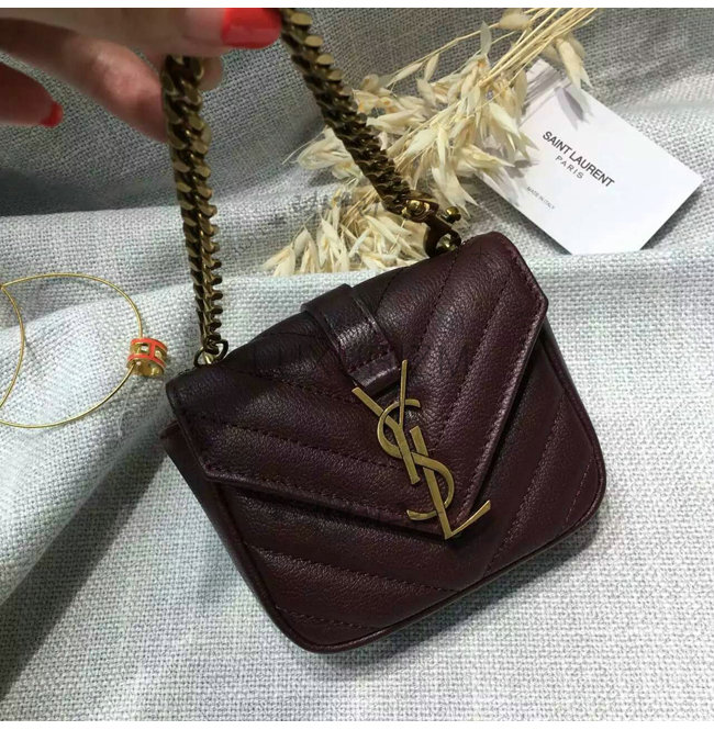 SAINT LAURENT-39287 생로랑 보르도 금장 미니 마틀라쎄 레더 컬리지 백