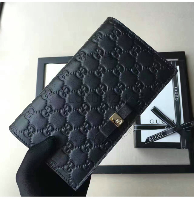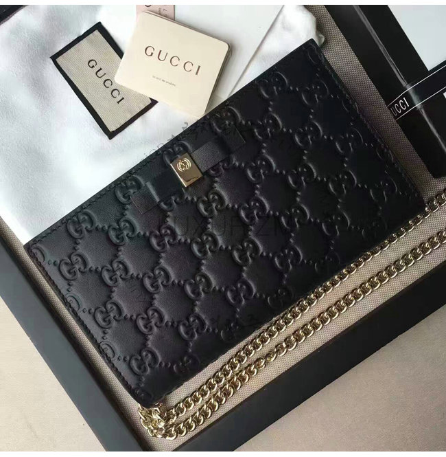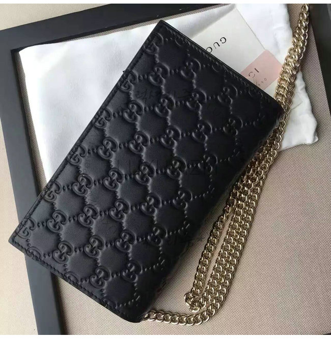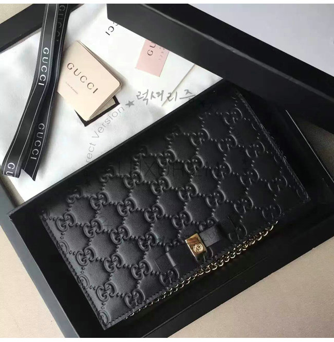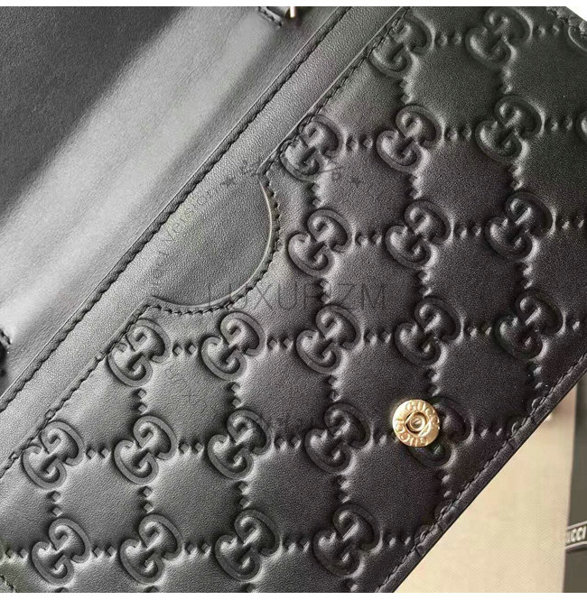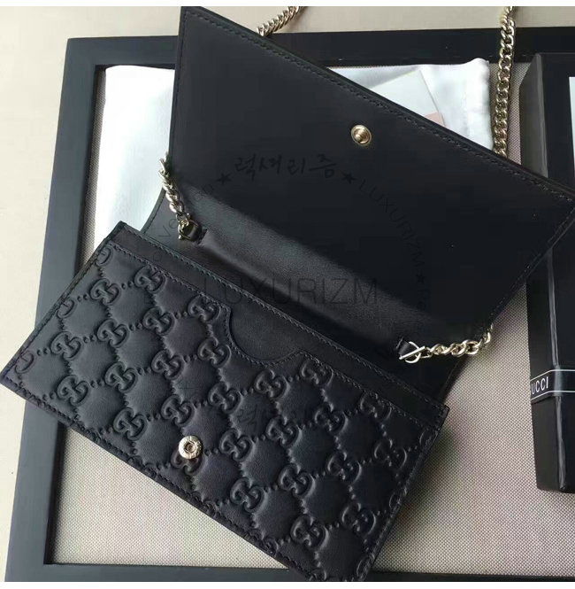 -2016년 프리폴 컬렉션/블랙 구찌 시그니처 가죽 6개의 카드 슬롯/1개의 지퍼 포켓 거싯.