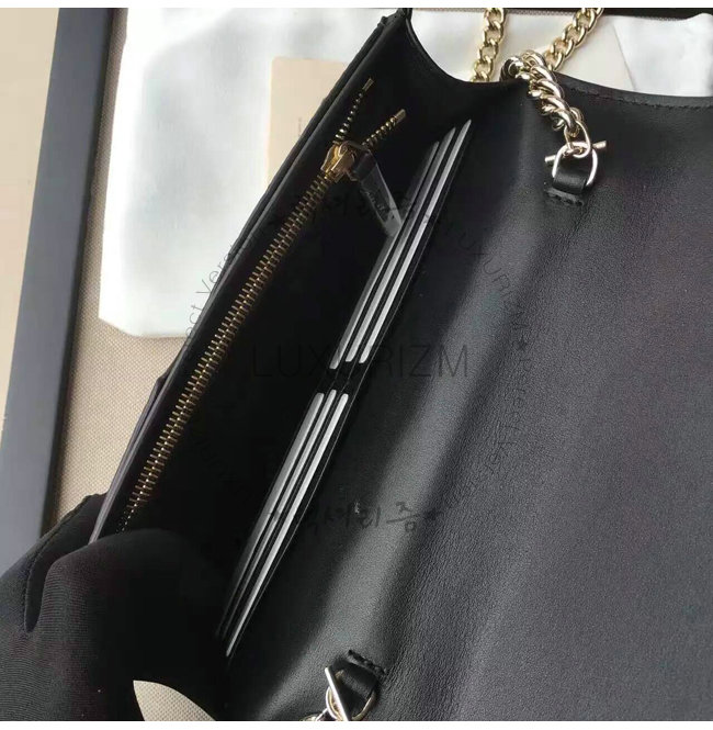-플랩 아래에 1개 아이폰수납용 외부사이드 포켓탈착 가능한 체인 숄더스트랩/1개플랫포켓.