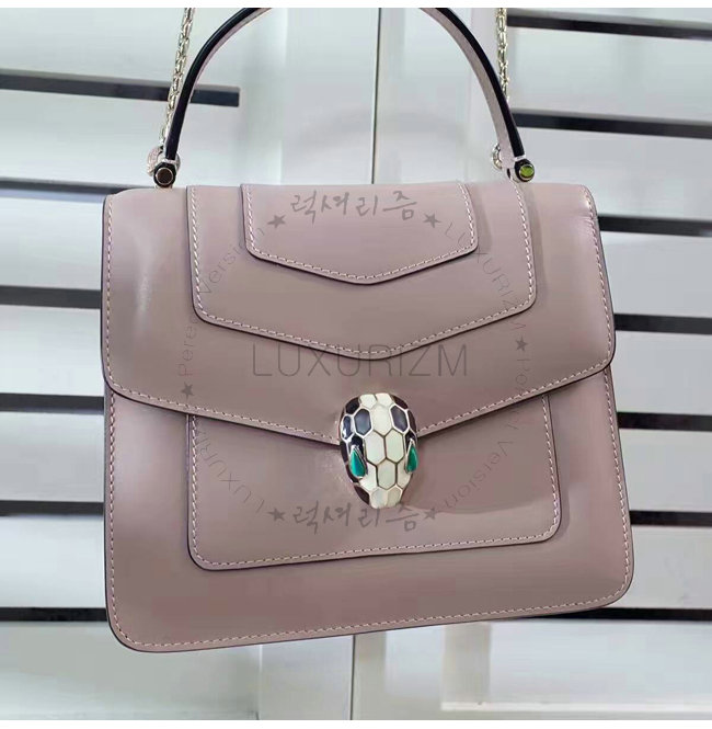 [스페셜오더]BVLGARI-283957 불가리 세르펜티 리넨 아게이트 컬러 플랩 커버 스몰 탑 핸들 백