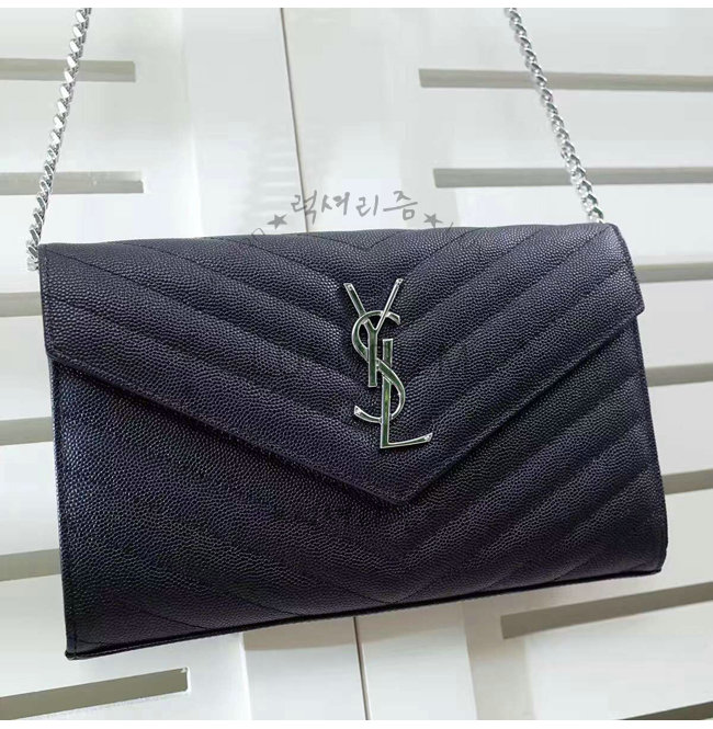 [스페셜오더]SAINT LAURENT-377828 생로랑 블랙 마틀라세가죽 은장 모노그램 체인숄더백
