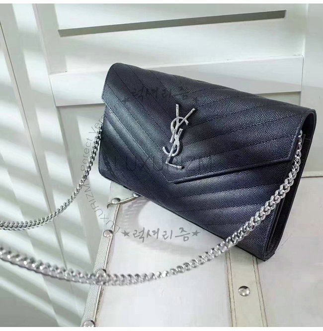 시크한 블랙컬러 은장YSL시그니처메탈 은장체인으로 완성된