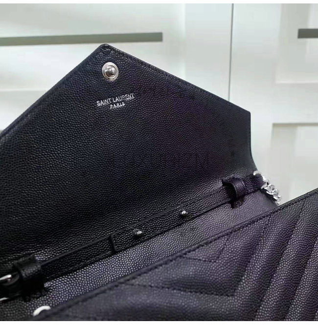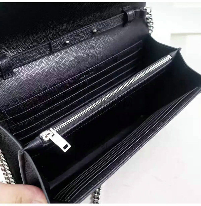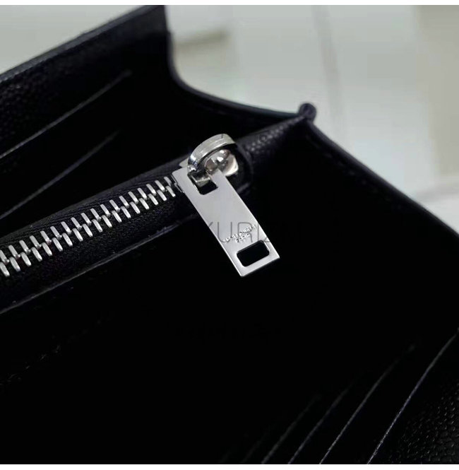 #홍콩럭셔리즘 스페셜오더SAINT LAURENT-생로랑 블랙 은장 그랑 드 뿌드르 텍스처드 마틀라세 가죽 모노그램 생로랑 체인지갑.