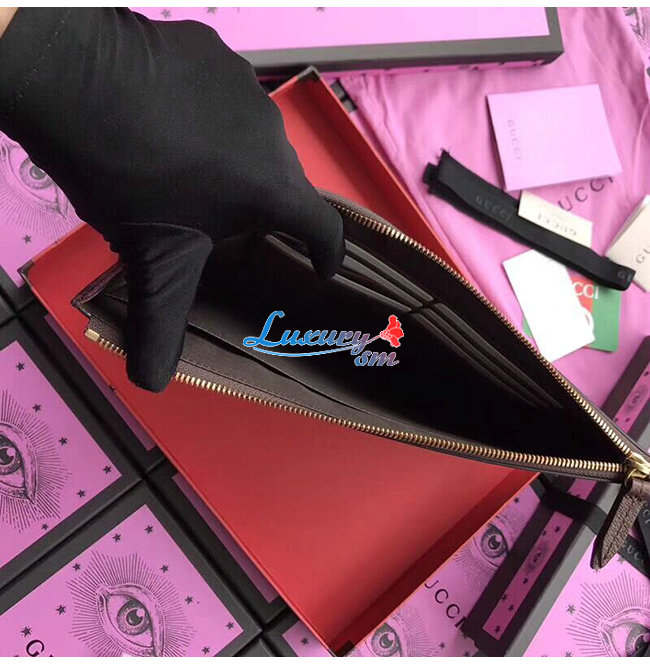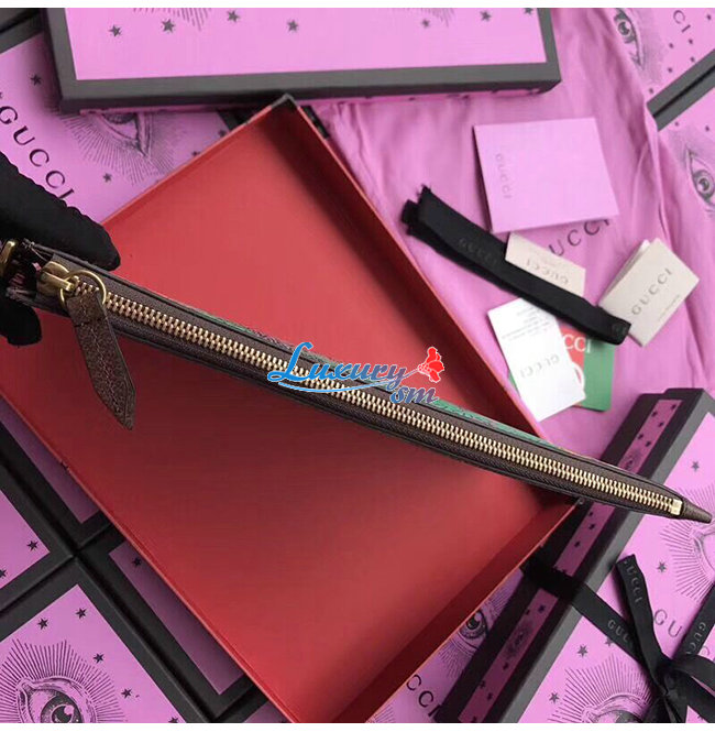 GG 수프림 캔버스 슬림 지퍼 파우치. 2017년 크루즈 컬렉션에서 처음 선보이는 구찌벵골 프린트.