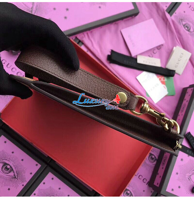 -2017 크루즈 컬렉션/에보니 GG 수프림 캔버스 및 구찌벵골 프린트/브라운 가죽 트리밍.