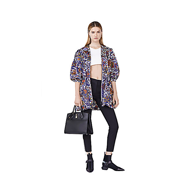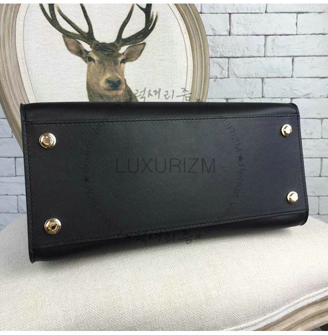 -소가죽 내피/은색 금속 장식/토론 손잡이 2개/탈착 길이조정 가능한 숄더 스트랩/뒷면 지퍼 수납칸.