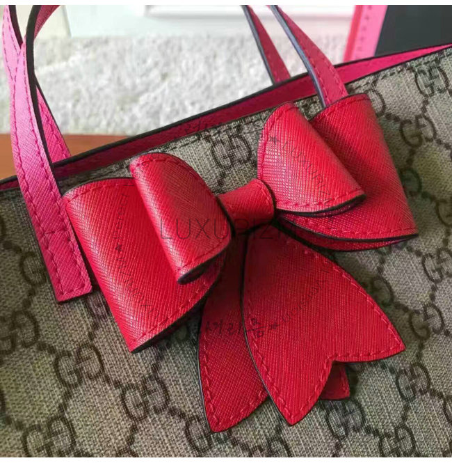 GUCCI-457232 8279 구찌 GG 수프림 칠드런 보우 토트백 레드 리본
