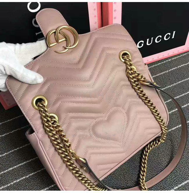 [스페셜오더]GUCCI-443497 5909 구찌 GG Marmont 마몽 마틀라세 스몰 체인 숄더 스트랩백 핑크