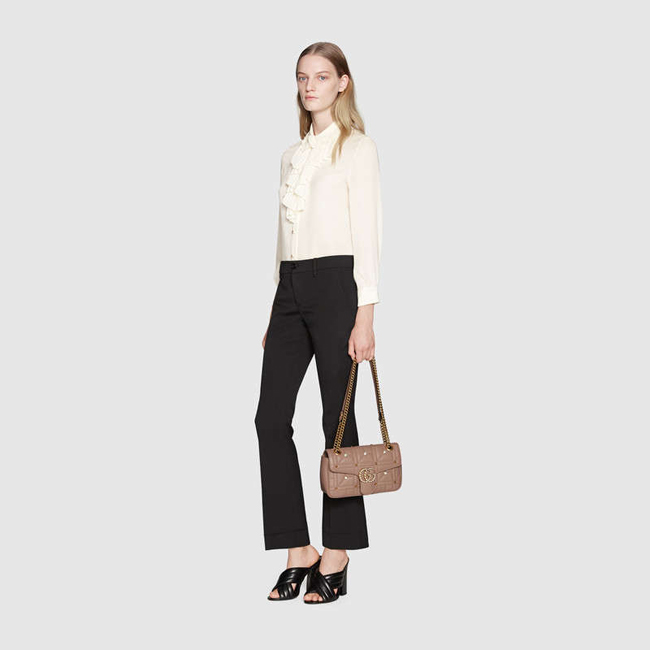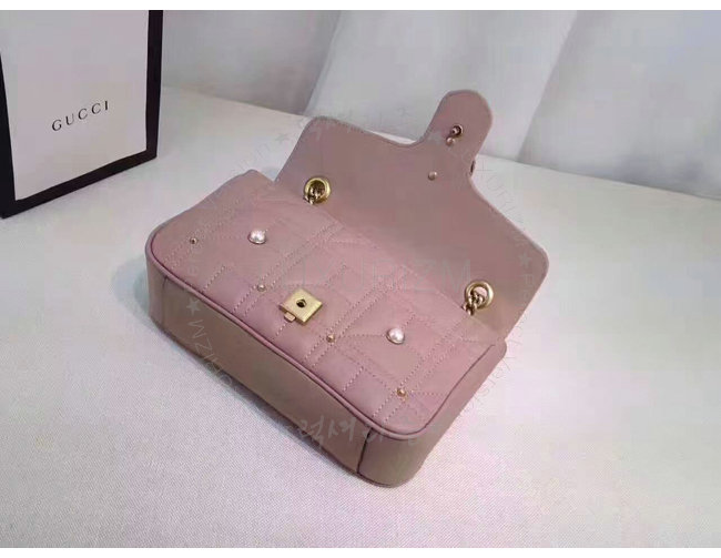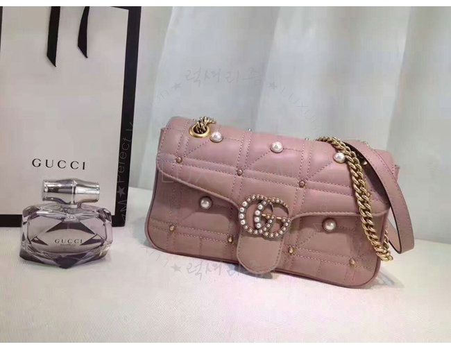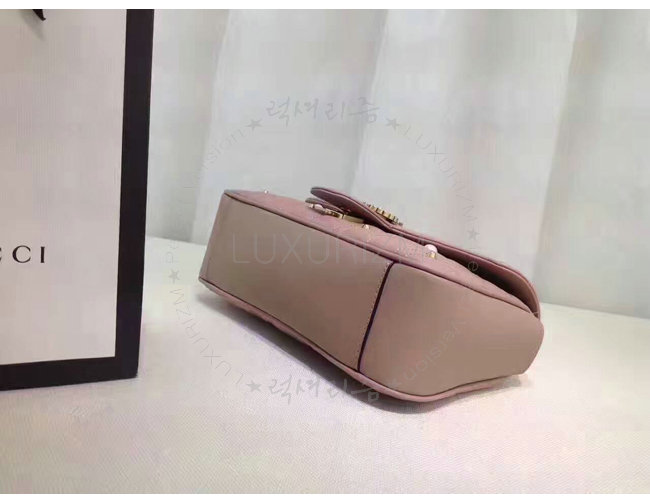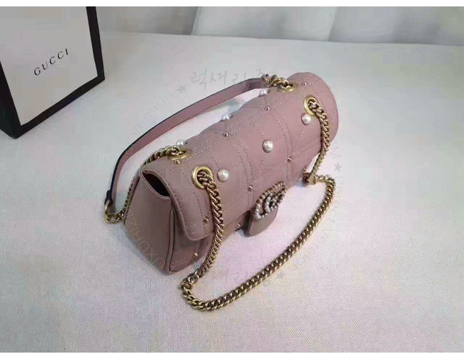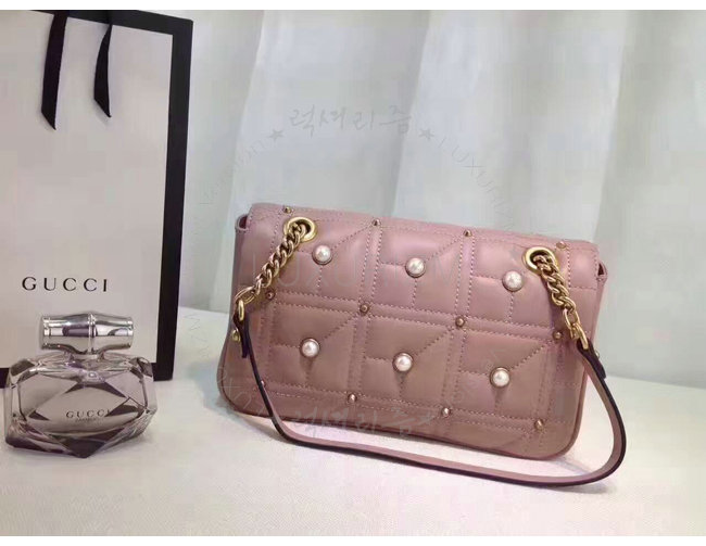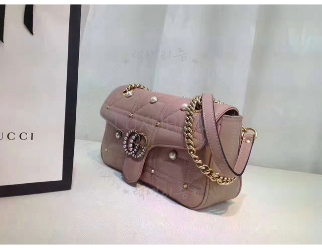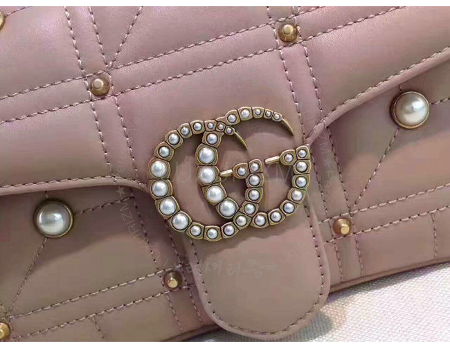 [스페셜오더]GUCCI-443497 5764구찌 GG Marmont 마몽메탈 및 펄 스터드 디테일 마틀라세 스몰 체인 숄더 스트랩백 누드