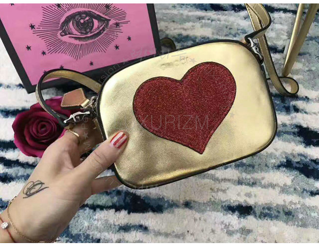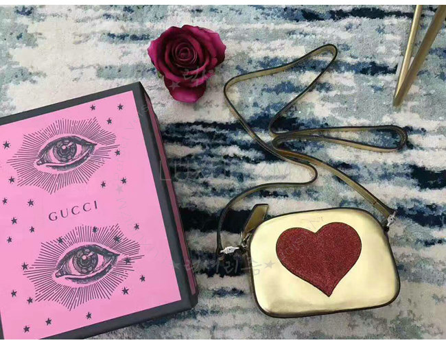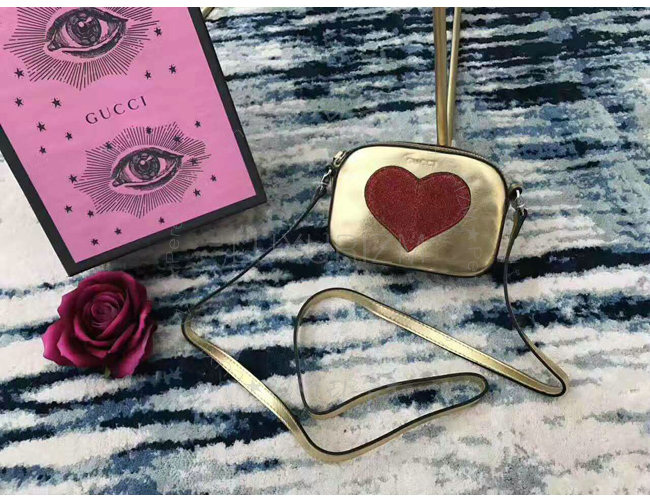 [스페셜오더]GUCCI-457223 8018 구찌 Childrens leather heart 하트 골드 메탈릭 가죽 메신저 백