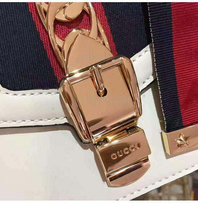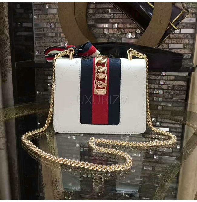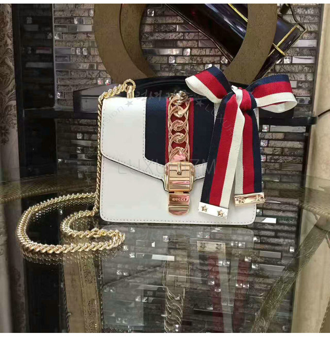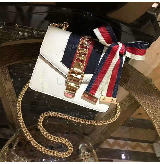 [스페셜오더]GUCCI-431666 8605 구찌 Sylvie 가죽 나일론 web 리본 장식 미니 체인백 화이트