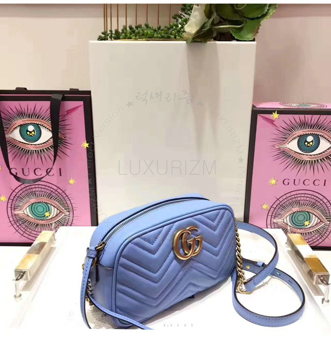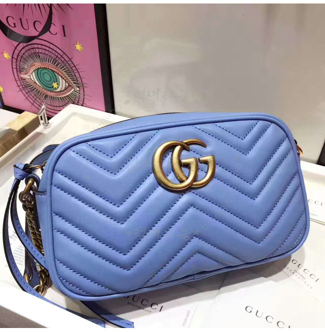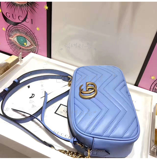 [스페셜오더]GUCCI-447632 4338 구찌 GG Marmont 라이트 블루 스몰 소프트 스트럭처드 체인 숄더백