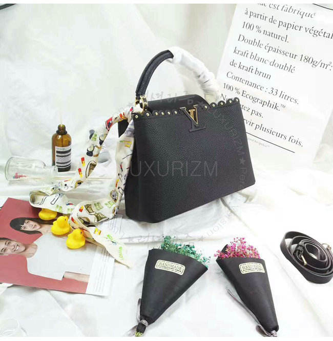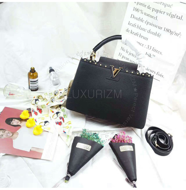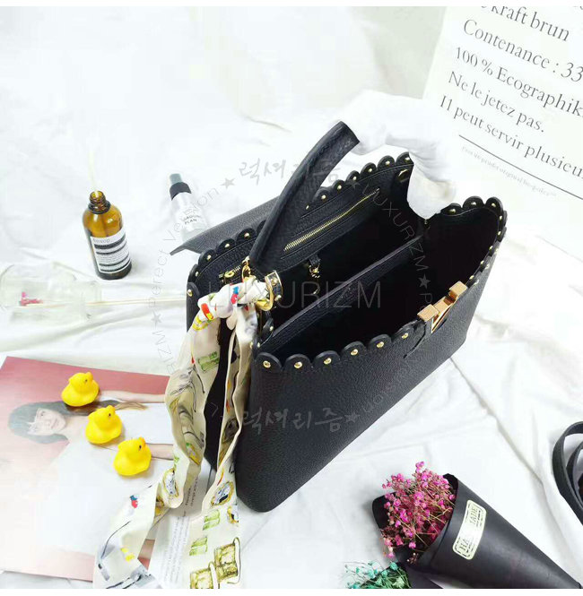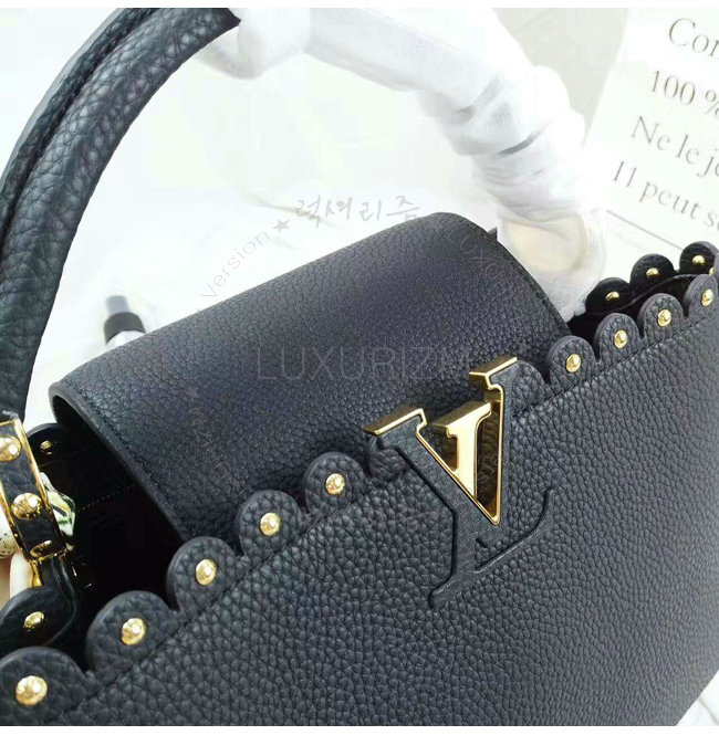 [스페셜오더]LOUIS VUITTON-M54565 루이비통 토뤼옹 레더 레이스 크로셰 스터드 장식 카퓌신 PM 블랙