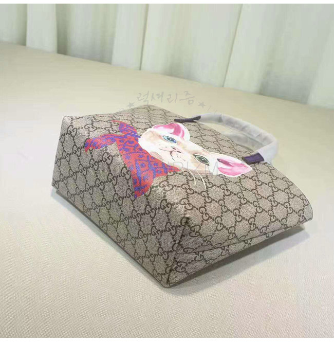 GUCCI-410812 8594 구찌 칠드런 GG수프림 캔버스 고양이 프린트 토트 백 핑크