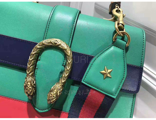 [스페셜오더]GUCCI-448075 8310 구찌 Dionysus 그린/블루/레드 가죽 미디엄 밤부 탑 핸들 백