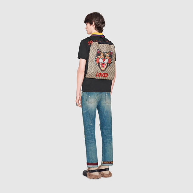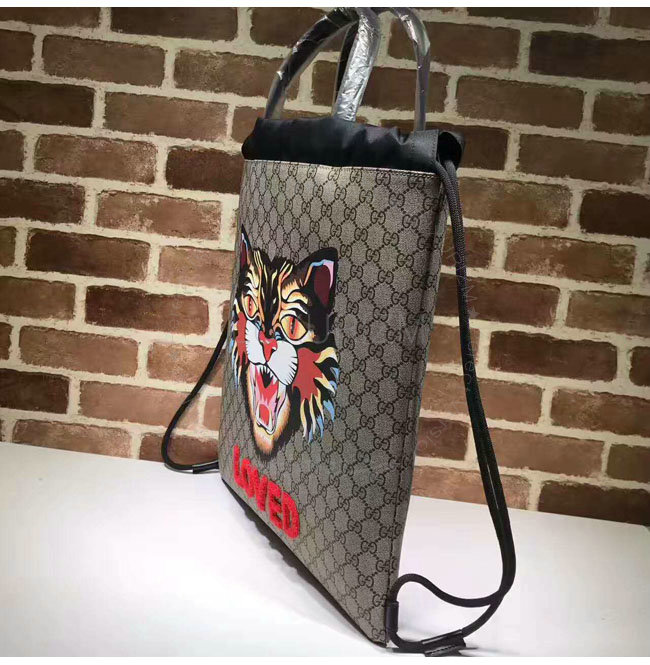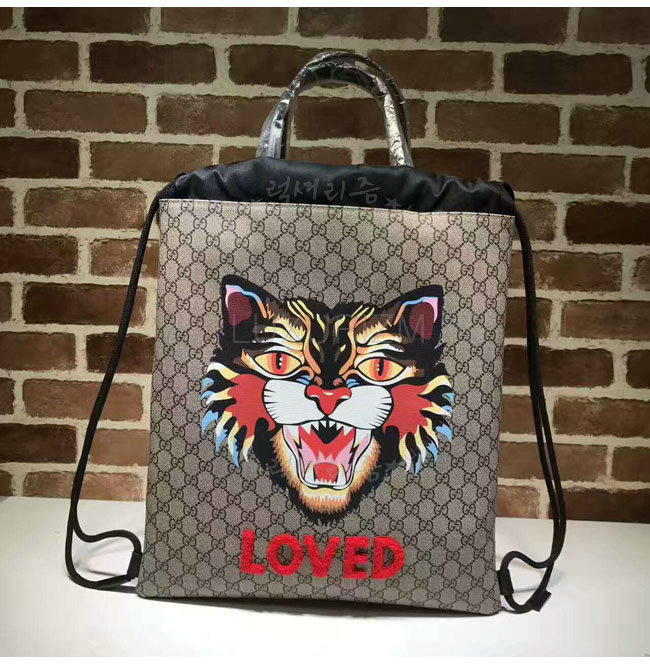 [스페셜오더]GUCCI-473872 8652 구찌 Gucci Bestiary 캣 프린트 소프트 GG 수프림 드로우스트링 백팩